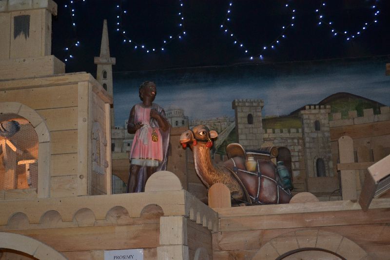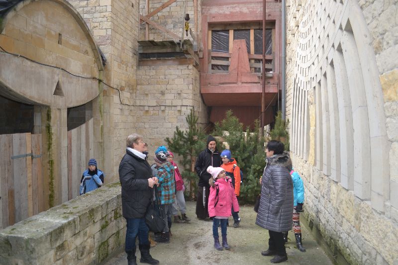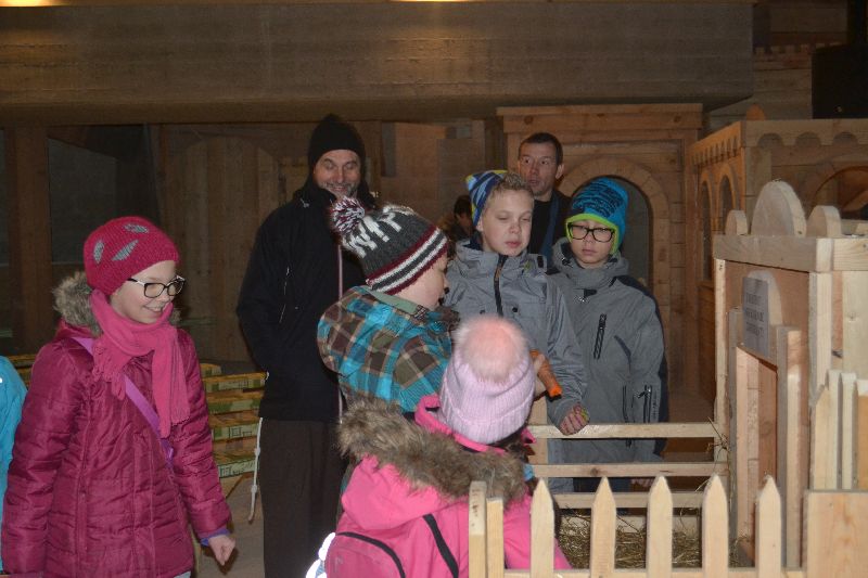 U św. Franciszka i św. Klary w Tychach, gdzie buduje się piękny kościół i klasztor. Jest to budowla niezwykła, powstaje na planie krzyża z San Damiano. Nad kościołem wznosi się pięć wież (jeszcze niedokończone) ku pamięci pięciu ran Chrystusa. Każdego roku w czasie bożonarodzeniowym franciszkanie budują olbrzymią stajenkę, wypełniając ją zwierzętami. Są baranki, osioł, kucyk, króliki, ptaki i wiele zwierzątek. My co roku chętnie odwiedzamy to miejsce. W tym roku przełożona Regionu s. Julia zorganizowała dla nas ognisko, kiełbaski i ciepłą herbatkę. Siostry Urszula i Melania poświęciły dla nas swój czas i były z nami do końca naszego pobytu. Mogliśmy też zobaczyć budowlę od środka, po której oprowadził nas pracownik budowy. W jeszcze surowym Oratorium zaśpiewaliśmy kolędy. Tyle pomieszczeń, że można było się pogubić. Chłopcom marzyła się wieża, ale to zostawiamy na następne lata. Jest tam też kaplica Porcjunkula odtworzona z całą dokładnością z oryginału. Nad budową czuwa o. Wawrzyniec Jaworski OFM (pochodzący z Katowic-Podlesia). Na zakończenie udaliśmy się do tymczasowego kościoła parafialnego i tam trwaliśmy przed tabernakulum, śpiewając kolędy. Nawet podróż tam i z powrotem była przyjemnością, bo odbywała się pociągiem.