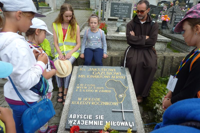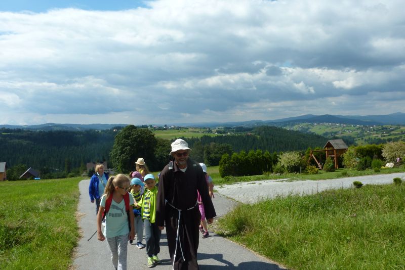 7-13.08.2016 21 uczestników wzięło udział w rekolekcjach ze św. Franciszkiem z Asyżu w Koniakowie. Przyjęli nas pani Irena i Stanisław. Brat Zbigniew Kołodziejczyk OFM Cap poprowadził rekolekcje dla kandydatów na Rycerzy. Moderatorzy: s.Leokadia, s.Teresa animator muzyczny Natalia, oraz szef super kuchni s.Stanisława. Przyjechały dzieci z Katowic, Orzesza, Rudy Śląskiej, Mikołowa, Sosnowca oraz dołączył do nas Janek z Koniakowa. Oprócz dwóch Rycerek były to dla nich pierwsze rekolekcje. Dobry rosołek przygotowany przez panią Irenę był smacznym początkiem. Przejechaliśmy do Jaworzynki, gdzie przywitał nas O.Boguchwał Orczyk OFM, opowiedział nam o tym miejscu. Tam w pustelni Ojców Franciszkanów rozpoczęliśmy rekolekcje Eucharystią. Potem grillowanie kiełbasek. Drugiego dnia weszliśmy na szczyt „Ochodzitej” po 4 godzinnym marszu. Przemierzaliśmy góry i pagórki z piosenką na ustach. Przez cały czas kontakt ze światem flory i fauny. Pogoda dopisała, tylko na czas odpoczynku popadało. Dla niektórych podchodzenie w górę i schodzenie w doliny nie było takie łatwe. Wspieraliśmy się wzajemnie. Byliśmy pieszo w Istebnej w kościółku a z powrotem wracaliśmy autobusem. Zaglądnęliśmy do Kawuloka, tam posłuchaliśmy opowieści Górala i dźwięku różnych instrumentów. Innym razem udaliśmy się do Bacówki do muzeum, a potem degustowaliśmy oscypki i sery. Odwiedziliśmy cmentarz w Koniakowie, gdzie jest pamiątkowy grób misjonarza Afryki +ks.Jakuba Gazura z Koniakowa. Wędrówkom nie było końca, nie zabrakło też lodów i owoców. Apetyt nam dopisywał. Zabawy, tańce i nowe piosenki łączyły nas w jedną wspólnotę. Każdego dnia uczestniczyliśmy we mszy świętej z kazaniem Br.Zbigniewa, dzieci domagały się coraz dłuższych homilii i opowieści z Afryki.