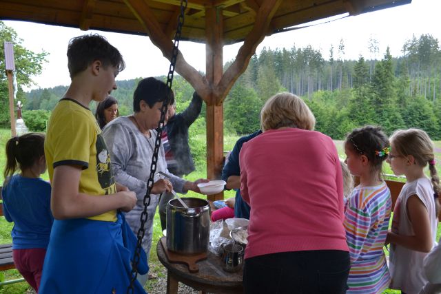 Rycerze św. Franciszka i schola z naszej parafii MB Częstochowskiej w Katowicach Podlesiu udała się autokarem na jednodniową pielgrzymkę do Pustelni O.O. Franciszkanów w Jaworzynce. Przy kościele w Jaworzynce spotkał się z nami o. Boguchwał Orczyk OFM i podprowadził autokar na samo miejsce. Drogi w górach są wąskie, kręte i strome, napracował się nasz kierowca pan Ryszard, żeby bezpiecznie nas dowieźć. Razem z nami jechał br. Elizeusz z Panewnik, s. Leokadia, p. Marysia, p. Teresa i dwóch p. Mariuszów. Uczestniczyliśmy we mszy św. którą odprawiał i homilię wygłosił O. Boguchwał. Prosiliśmy w czasie mszy św. o opiekuna dla „Rycerzy św. Franciszka” Czytanie – Szymon, psalm - s. Leokadia, a śpiew wszyscy z p. Marysią, która przygrywała na gitarze. Wybraliśmy się na spacer do źródełka, obserwując otaczające nas góry, las, strumyk, ptaki i przyglądając się pięknym kwitnącym ostom. Posililiśmy się ciepłą zupą pomidorową i drożdżówką. Posłuchaliśmy opowiadań o pustelni, o mieszkańcach i pustelnikach. Na budynku pustelni widnieje TAU-ka, która oznajmia nam przynależność do Zakonu Franciszkańskiego. Ciężko było odjeżdżać, jeszcze tylko pamiątkowe zdjęcie. Autokarem przejechaliśmy na Równicę, by pojeździć na torze saneczkowym i kupić pamiątki. Tu też nie zapomniane wrażenia. Na niebie słoneczko, chmurki bez deszczu i tak było do końca. Trzeba nam znowu wsiąść do autokaru, by dojechać do parafii św. Marcina w Międzyrzeczu. Ks. Proboszcz umożliwił nam rozpalenie ogniska. Własnoręcznie pieczona kiełbasa i zabawy wypełniły nam resztę wolnego czasu. Brat Elizeusz nauczał nas rozpalania ognia krzesiwem. Wszyscy chcieli spróbować. Wracając śpiewaliśmy nasze rycerskie i franciszkańskie piosenki. POKÓJ DOBRO BRATERSTWO.
