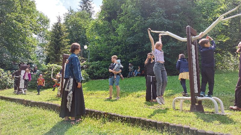 Środa upłynęła na spacerze do punktu widokowego, skałki i do Pałacu Prezydenckiego na kawę, lody, ciastka. Dla dzieci i rodziców zabawy na placyku oraz ćwiczenia na urządzeniach sportowych w parku. Wieczorem odwiedził nas ksiądz proboszcz, wszyscy zasiedliśmy do kolacji na grillu były śpiewy tańce i opowiadania.