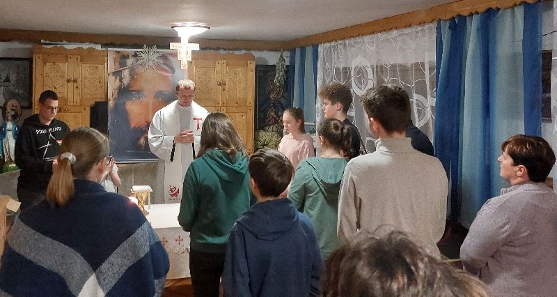 Skorzystało z niego 20 osób. Pomimo trudności z dojazdem, rozpoczęliśmy mszą świętą wieczorną. Sobota przywitała nas pięknym słońcem, oprószonymi śniegiem drzewami w pięknej bieli. Zaraz po modlitwie porannej i śniadaniu wyruszyliśmy do kościoła na Stecowkę. Pomimo dłuższego spaceru i to pod górkę, wszyscy mieli zadowolone miny. W końcu przecież udało nam się spotkać razem. Przewodniczył nam o.Roman Janusz ofm. Tam odmówiliśmy cały różaniec w intencji młodzieży, nowych powołań do trzech zakonów franciszkańskich. W niedzielę wyszliśmy jeszcze na punkt widokowy, ale już przy trochę innej pogodzie. Młodzież zaskoczyła nas swoim zaangażowaniem, to znaczy przygrywaniem nowych osób na gitarach i skrzypcach do mszy świętej i koronce do Bożego Miłosierdzia. O. Roman poprowadził dla młodzieży, konferencję o Eucharystii. W sobotę po mszy świętej wieczornej trwaliśmy na adoracji Najświętszego Sakramentu przy figurze Chrystusa Króla. Odmówiliśmy razem akt oddania Chrystusowi królowi. Nad weekendem czuwały s.Małgosia i s.Leokadia. Pokój i Dobro.