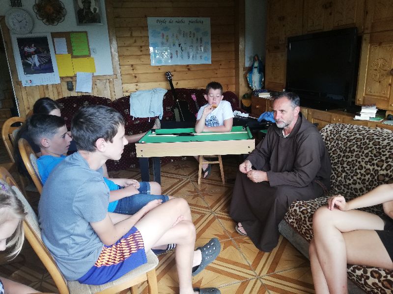 30.07 do 9.08.2020 Rekolekcje sierpniowe dla Rycerzy św. Franciszka. Wybranych 12 osób, które zdobyły najwięcej punktów, przyjechały 3 dni wcześniej. Są to Rycerze bardzo aktywni i lubiani. W pierwszych dniach ustaliliśmy zasady, grupy, oraz dyżury na rekolekcjach. Rekolekcje prowadził Br. Zbigniew Kołodziejczyk OFM Cap przy współpracy z siostrami - czterema animatorkami: Leokadią Puto, Anią Migałą, Karoliną Dobrzańską (skrzypce), Julką Błaszczyk (gitara). Byli z nami i pomagali nam rodzice Ania i Artur, s. Elżbieta Strzempa oraz Br Franciszek Żur OFM Cap. W rekolekcjach uczestniczyło 30 osób, w tym 20 dzieci: z Katowic Podlesia (9), z Rudy Śląskiej (3),z Gliwice (3), z Bytomia (2), z Istebnej (2), z Bierunia (1). Rycerze codziennie uczestniczyli w Eucharystii z homilią Br.Zbigniewa. Wszyscy otrzymali Pismo Święte NT. W „namiotach” (grupach) rozważaliśmy i dzieliliśmy się Słowem (Ewangelią Św. Marka). Jak zwykle, było dużo propozycji spędzenia czasu, które zrealizowaliśmy: park linowy (dziękujemy Radzie Narodowej FZŚ za sponsoring), jazda na konikach na Kubalonce oraz przejazd wozami po Istebnej. Spacery dzienne z zajadaniem jagód, malin, poziomek a nocne z obserwacją gwiezdnego nieba. Codzienna Koronka do Miłosierdzia Bożego, Różaniec przy kapliczkach, wieczorna Droga Krzyżowa, wspólne przygotowanie deseru, oglądanie 2 filmów „Marcelino chleb i wino” „Joshua”. Część grupy udała się na Baranią Górę. Były też śpiewy, tańce, gry terenowe i planszowe, karty, codzienna kąpiel w basenie lub stawie, jazda na quadzie, pomoc przy składaniu siana, przyprowadzanie owieczek z pola do zagrody. Nie było nudy. Telefony do rodziców na godzinkę po obiedzie ( nie zawsze wykorzystane). Gospodarze zadbali o nasze żołądki, przygotowując bardzo smaczne posiłki: śniadania, obiady i kolacje, lody i codziennie owoce. Dzieci podczas turnusu, kolejno brały udział na przemian w czterech dyżurach: I grupa- porządkowanie jadalni i nakrywanie do stołu, II grupa- sprzątanie odkurzaczem klatki schodowej i korytarzy, III grupa- przygotowanie i uporządkowanie kaplicy, IV grupa – prowadzenie codziennych modlitw rannych i wieczornych, oprawa Mszy Św. Część chętnych dzieci korzystała z porannej gimnastyki o godz 6.30 prowadzonej przez s.Anię. 2 sierpnia przeżywaliśmy Święto MB Anielskiej. Dzieci w grupach czytały o odpuście Porcjunkuli i św. Franciszku i na koniec dzieliły się najciekawszymi odkryciami z drugimi. Oglądaliśmy film o Asyżu i Porcjunkuli. Dzieci zapragnęły pojechać w to miejsce na rekolekcje. Były też wieczory talentów. Adam przedstawił zrobioną przez siebie stronkę internetową dla Młodzieży Rycerskiej. Był też pokaz filmików zrobionych przez Rycerzy z Podlesia, które wywołały wiele radości. Dla prowadzących i chętnych była wspólna modlitwa brewiarzowa: Jutrznia i Nieszpory śpiewane.