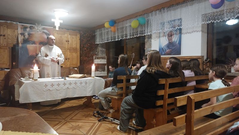 I co dalej? Codziennie spotykamy się razem o 15:00 godzinie, by zaśpiewać Koronkę do Bożego Miłosierdzia. Wieczorem bierzemy udział we wspólnej Mszy Świętej, więc najpierw wspólnie robimy przemeblowanie jadalni, chłopcy ustalają z kapłanem dyżury ministranckie, a uzdolniona muzycznie młodzież przygotowuje oprawę muzyczną przy akompaniamencie gitar i skrzypiec. Późnym wieczorem przed snem razem odmawiamy różaniec. Tym razem i dzieci, i młodzież zdecydowały się zawierzyć Matce Bożej aktem oddania Niepokalanemu Poczęciu.