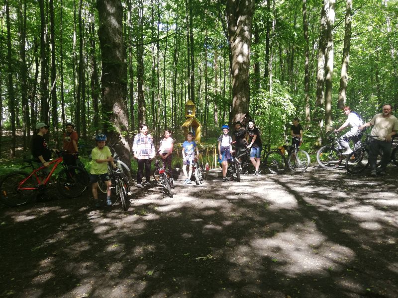 Rycerze byli chętni na przejażdżkę rowerami po podleskim lesie. Spotkaliśmy się u s. Leokadii 6 czerwca o 15.00 i odmówiliśmy koronkę do Miłosierdzia Bożego. Wraz z bratem Zbigniewem, Julką i s.Leokadią, Rycerze: Adam, Błażej, Marcin, Maks, Janek, Bartek, Łukasz, Mateusz, Dawid i Nikola, ruszyliśmy w drogę. Pierwszym punktem była kapliczka w Kostuchnie, potem tunel, staw, wymiana wieści co słychać u każdego. Przerwa na co nieco słodkiego i dłuższa jazda. Na koniec rozesłanie z błogosławieństwem.