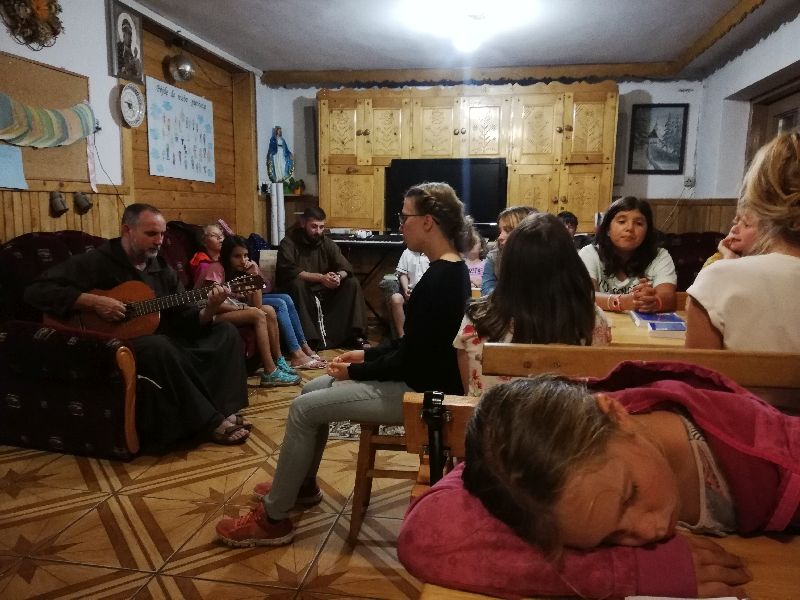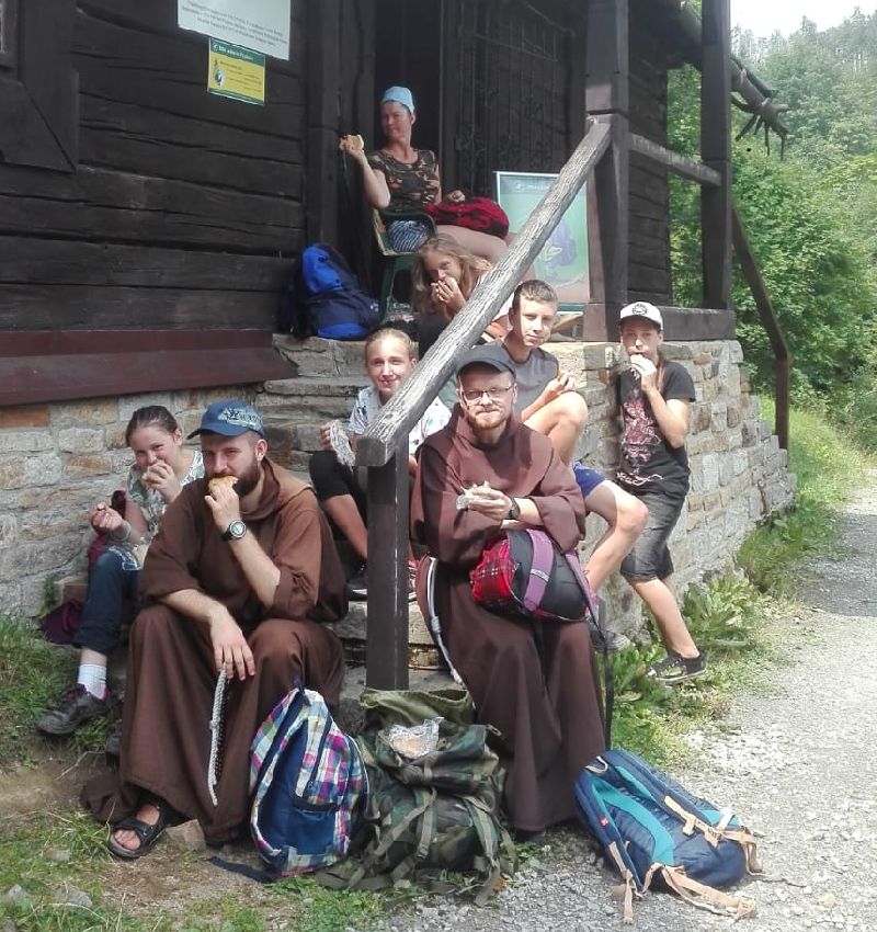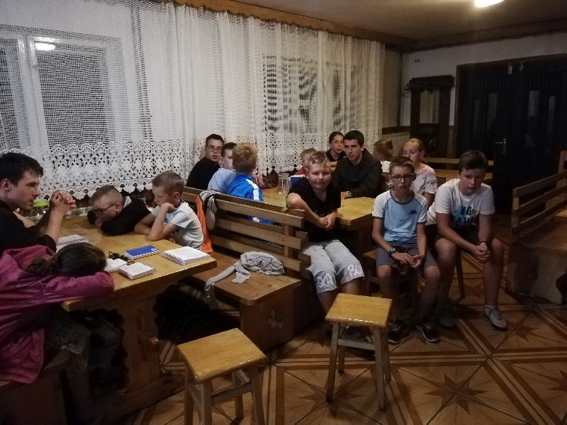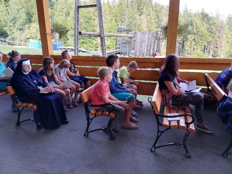 3-11.08.2019 Z rekolekcji dla Rycerzy Świętego Franciszka w sierpniu skorzystało 24 dzieci z Katowic Podlesia, Rudy Śląskiej, Bytomia, Gliwic, Bierunia Nowego i był nawet Olek ze Stanów Zjednoczonych. Rekolekcje poprowadził asystent Regionu Katowickiego brat Zbigniew Kołodziejczyk ofm cap. Cieszyliśmy się z posługi czterech braci zakonnych. Byli z nami: br.Piotr Zachciał ofm cap i br.Kamil Pasierbski ofm cap z Krakowa oraz Tarsycjusz Niestrój ofm i br. Noe Majewski ofm z Panewnik. Z moderatorów s.Leokadia Puto, s.Sylwia Młynarczyk, pani Ania Migała ( psycholog i psychoterapeuta) i studentka Karolina Dobrzańska- nasza animatorka muzyczna grająca na skrzypcach. Z instrumentami przyjechały także rycerki: Marta ze skrzypcami i druga Marta z gitarą. Byliśmy rozśpiewaną wielką drużyną. Podzieliliśmy się na grupy; była rywalizacja w czystości pokojów, sportowa, indywidualna - to znaczy były wieczory talentów i oczywiście nagrody o których nie zapominała Karolina. Nie zabrakło wyjścia na park linowy - a w tym samym czasie, część osób zdobywała Baranią Górę. Mogliśmy wszyscy pojeździć konno, a reszta w oczekiwaniu tańczyła w plenerze. Odwiedziliśmy muzeum Jana Wałacha. Codziennie graliśmy w piłkę nożną, kąpaliśmy się w basenie i w stawie, woda zimna, chętnych dużo. Były konkursy sportowe, przechadzki w górach, spacery po lesie, zbieranie jagód i grzybów, gra w chowanego, wypasanie owieczek, rysowanie... To wszystko, co proponowali sami uczestnicy, w większości udało się zrealizować. Jeden wieczór przeznaczyliśmy na poznawanie świętych franciszkańskich. Uczestnicy przygotowali sobie przebranie i opowieści o świętych. Odwiedził nas ksiądz Michał Anderko. Przez dwa dni odprawiał nam Mszę świętą i głosił homilie. Na Msze św. Przychodzili gospodarze, sąsiedzi, wczasowicze i siostra Filemona, służebniczka, która świętowała 70-lecie w Zgromadzeniu. Opowiadała nam, że część życia spędziła we Włoszech na Watykanie. Siostra Leokadia robiła fotki i filmiki, byśmy mogli przypomnieć sobie nasze wspólne dni w Istebnej Połom. Przez cały czas o stronę kulinarną dbali gospodarze Władysław i Mariola Procner z siostrą Stasią Wolny, którzy dogadzali naszym podniebieniom. Było rożno, smaczne desery, owoce, kluski na parze z jagodami, lody i przepyszne śniadania, obiady i kolacje.