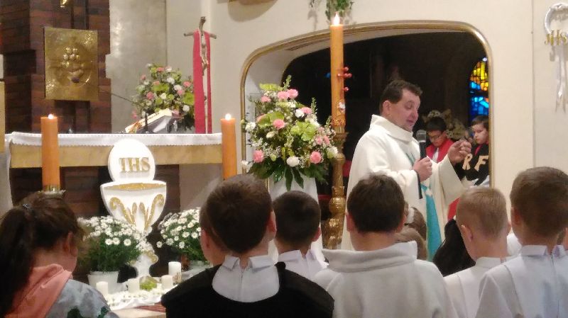 Rycerze uczęszczają na majowe. Na propozycję naszych kapłanów, nasza grupa zaprezentowała się w tym dniu w parafii. W białym tygodniu na majowe i eucharystię przychodzą dzieci komunijne. Ksiądz proboszcz Jacek mocno na kazaniu zachęcał wszystkie dzieci do włączenia się w grupy działające w naszym kościele. Dzieci otrzymały namiary na naszą rycerską stronę z Aaronowym błogosławieństwem wyśpiewanym przez s.Natalię a s.Leokadia zachęciła do zapoznania się z naszą grupą na fzskatowicepodlesie.pl/rf/ , rozważenie i decyzję.
